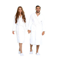男女兼用ロングホワイトコットンバスローブ男女兼用ホテルスパ家庭用ソフト吸収性タオルローブセットカップルまたは大人用